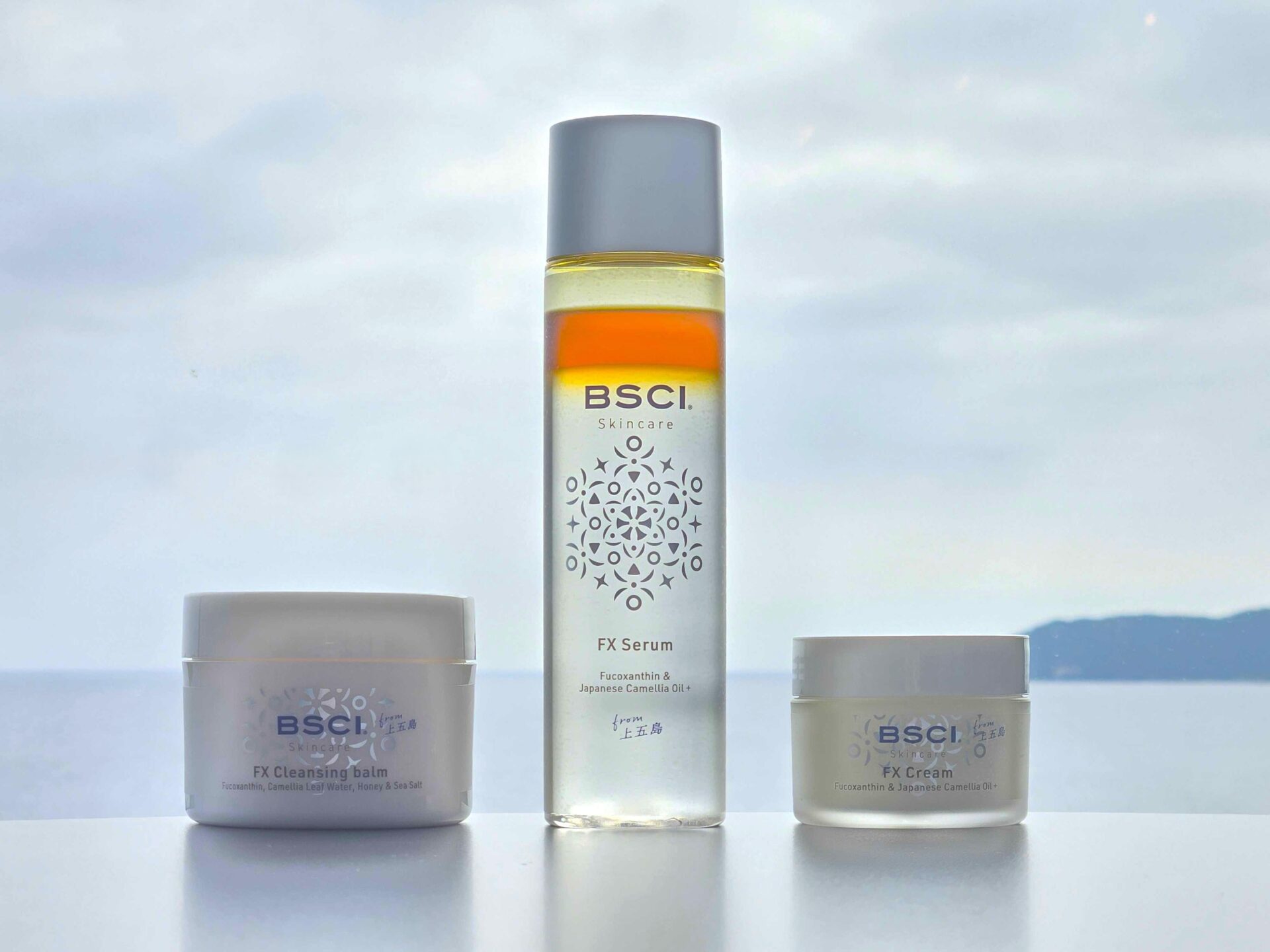 美しい五島の海を背景に培養開発されたBSCIの海洋由来成分“FX”フコキサンチン。
