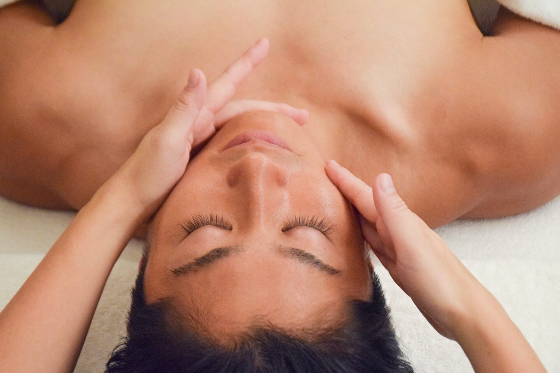 額から頭部全体を優しく包み込み、ストレスをやわらげ、脳の休息へ誘います。